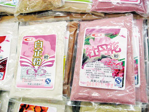 些敷臉的粉末不在護(hù)膚品分類中出現(xiàn),而是在超市的面粉區(qū)域銷售,也有近百種之多,將水果、蔬菜以及堅(jiān)果的提取物同面粉結(jié)合,這樣的粉可以用溫水調(diào)和,用小火或微波爐煮制食用,也可以加蛋清或蜂蜜敷臉,其實(shí)喜歡DIY面膜的女士們一定知道,用蛋黃混合面粉而成的面膜薄薄地涂在臉上,可滋潤皮膚。只不過現(xiàn)在我們食用的面粉可以用這些特殊的面粉代替了,會有更多的功效在里面,比如美白、抗敏、排毒等功效?蛇x擇的有杏仁粉、枸杞粉、玫瑰花粉、苦瓜粉、淮山粉、薏仁粉、檸檬粉、蘆薈粉、白芷粉、紅豆粉、綠豆粉、杜鵑花粉、黑木耳粉、荷葉粉等等。70克一小袋兒要花費(fèi)近17元,顯然敷臉比食用更劃算些。(文/攝 孫小雅)