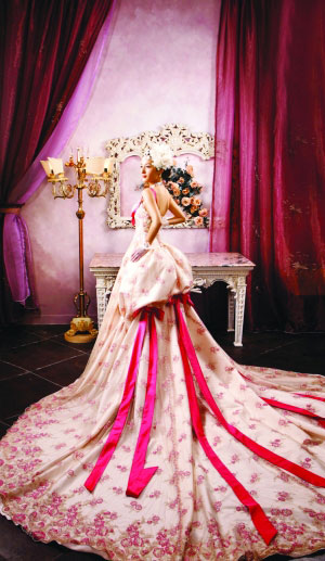 米蘭婚紗攝影的婚紗陳列區(qū)有上百件多彩炫目的婚紗、禮服,要從這么多件婚紗里選出幾件適合自己的,還真要有點耐心!米蘭負責人告訴記者,先要搞清自己適合穿哪種材質(zhì)婚紗;榧喌牟馁|(zhì)有很多種,比如全真絲高貴典雅;雪紡材質(zhì)清爽涼快;洋緞面高貴大方;蕾絲材質(zhì),是作為裝飾及點綴之用;塔府綢,輕身而滑溜,給人輕盈的感覺。如果你屬于可愛型,可以選擇蕾絲設計較多的款式;如果你的氣質(zhì)適合高貴典雅的風格,就選擇洋緞面婚紗,因為它很“抬人”!