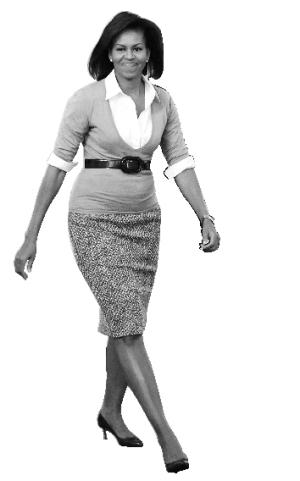 米歇爾的形象每天都有變化,這讓她與喜歡褲裝套服的勞拉·布什和希拉里·克林頓形成鮮明對比。米歇爾會重復(fù)穿同樣的衣服,不過會配上新飾品,這也是普通女性的做法。