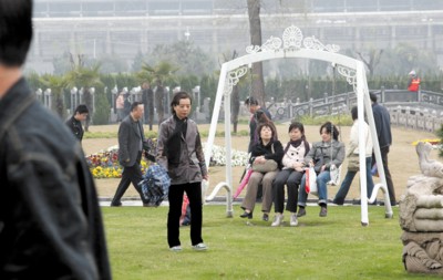 昨天上午9點(diǎn)30分,工作人員撞鐘5響,擊鼓5聲。隨后,祭祀典禮拉開序幕。所有參加表演的人都是濱海古園的掃墓者,人們用詩歌朗誦、民間舞蹈、民族音樂等藝術(shù)表演的方式祭祀先人。有人聲情并茂地朗誦詩歌《古園賦》,用一支無形之筆描繪春色古園;而年輕的男演員剛健中帶著深情、瀟灑中帶著凝重,用集舞蹈、雜技、體育為一體的奉賢民俗傳統(tǒng)技藝——千年滾燈舞動出守望與傳承;二胡、笛子、古箏、琵琶四姐妹重返古園舞臺,精彩演奏樂曲《真的好想你》、《媽媽的吻》等;上海市老年書法家協(xié)會會長林仲興等4位書法家進(jìn)行了現(xiàn)場秀。