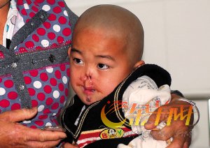 “小孩子現(xiàn)在大了,常聽別人議論,也已經(jīng)明白自己的傷是怎么來的,”小祖爸爸說,孩子雖然面部有缺損,但十分懂事,每次做手術(shù)都不哭不鬧,相當配合。(張小磊 郭梅美 劉文勇 李巖)
