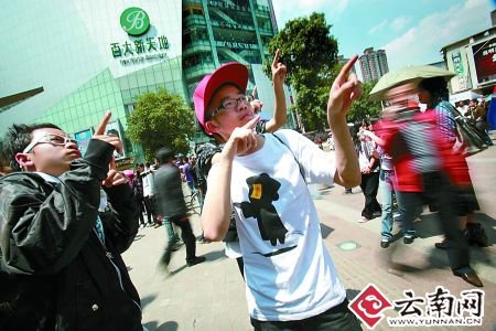 昨天(4月12日)下午1點40分左右,這些年輕人就開始在昆明南屏步行街廣場前聚集,大家三三兩兩地在一起說說笑笑。2點10分左右,突然傳來了一聲哨響,剛剛還在走來走去的人群突然不動了。動作甚至表情都僵硬不變。這一突發(fā)狀況也嚇壞了很多路過的市民,王女士表示:“當我發(fā)現(xiàn)周圍的人都突然不動了的時候,我一下覺得很恐怖,想這是什么陰謀?!”一些老人也非常不理解:“這些年輕人怕是都約好的了,全部在這里擺造型,一個二個表情還多嚴肅,我還以為是出了多大的事,被嚇著了!
