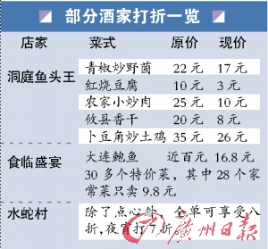 據(jù)飯統(tǒng)網(wǎng)廣州站負(fù)責(zé)人郭志林介紹,目前,廣州有40%左右的中高檔酒樓對(duì)菜價(jià)進(jìn)行下調(diào),降價(jià)幅度達(dá)到15%~20%。而沒有調(diào)價(jià)的酒樓也采用了送現(xiàn)金券、優(yōu)惠券、打折特價(jià)等促銷方式。