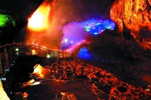 此外,連州還得到了大自然的特別眷顧,獨特的自然山水使得包括韓愈、劉禹錫等在內(nèi)的名人時文思泉涌,在山水巖洞里留下了不少的墨寶。被譽為“洞河仙境”的連州地下河是其中的典型代表。一位作家在游覽之后感嘆:洞河奇境,幻象之旅;八個字生動、形象、傳神地概括了連州地下河的特點。洞中有無數(shù)千姿百態(tài)、瑰麗多彩的鐘乳石,走在這里就像是走進了一座天然的迷宮。
