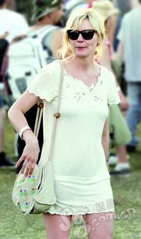乍一眼還以為克里斯滕·鄧斯特是在穿著睡衣上街呢,貼身、柔軟的棉布裙讓平胸和小腹異常的明顯,如果搭配一條高腰裙會好得多。