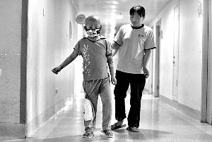在和母親陳淑春談話時,7歲的子晨從門邊露出光光的小腦袋向醫(yī)生辦公室里張望。醫(yī)生說,能恢復到現(xiàn)在這樣,已有很大改觀,“剛住院時,他雙腿沒有知覺,3次病危!