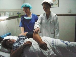在醫(yī)院,比丈夫朱德全更緊張的是醫(yī)護(hù)人員。要扶李女士上下床,必須出動(dòng)5個(gè)護(hù)士,用儀器檢查時(shí)需要她經(jīng)常翻身,醫(yī)生護(hù)士經(jīng)常累得大汗淋漓。張建華教授說,為李女士進(jìn)行剖宮產(chǎn)手術(shù)的時(shí)候,她的助手達(dá)到6個(gè)人,比平時(shí)多了一倍。