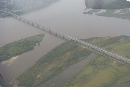 這是從飛機(jī)上航拍的哈巴羅夫斯克市內(nèi)的阿穆爾河(黑龍江)大橋,這不是界橋,這一段的阿穆爾河是俄羅斯的內(nèi)河。