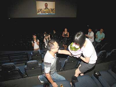 原來(lái),80后的李燦悄悄邀約好友助陣,包下影院策劃出了這個(gè)浪漫的求婚儀式。