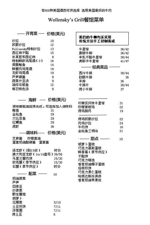 根據(jù)Smith&Wollensky牛排連鎖店網(wǎng)站的資料,這家餐廳每道菜在30~60美元之間,最貴的一款菜是14盎司的澳大利亞龍蝦,價(jià)值59美元。對(duì)于211萬(wàn)美元的成交價(jià)格,Smith&Wollensky顯得很驚訝,他們稱“相對(duì)競(jìng)拍的天價(jià),這頓午餐花費(fèi)只是個(gè)零頭!