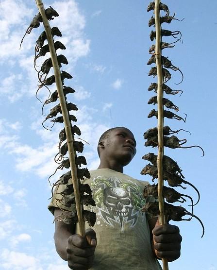 中國(guó)日?qǐng)?bào)網(wǎng)環(huán)球在線消息:你能想象嗎?處處被人喊打的過街老鼠如今在非洲國(guó)家馬拉維成為了當(dāng)?shù)厝搜壑械摹懊牢丁薄?jù)英國(guó)《每日郵報(bào)》8月9日?qǐng)?bào)道,如今不少馬拉維當(dāng)?shù)厝藢㈦缰苹蛘唢L(fēng)干的熟田鼠穿成串沿街叫賣,雖然田鼠“賣相有些猙獰”,但是銷路卻十分不錯(cuò)。