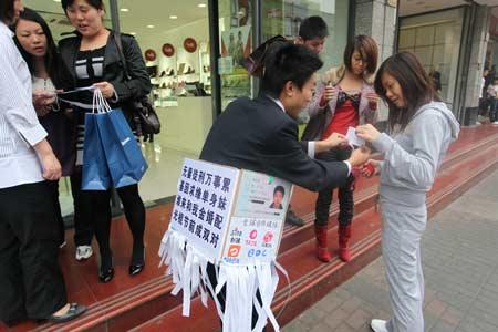 光棍南京路上跳“草裙舞”征婚