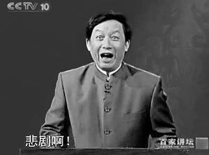 易中天在一期《百家講壇》中說(shuō)了一句“悲劇啊”,這張截圖也是“悲劇”一詞迅速流行的重要原因。