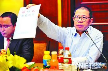 農(nóng)夫山泉董事長鐘睒睒昨表示對(duì)復(fù)檢“不予認(rèn)同”。圖為11月30日鐘睒睒展示有關(guān)部門的檢驗(yàn)報(bào)告-供圖/新華