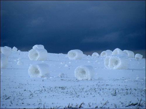 不尋常的自然現(xiàn)象很多人都有所耳聞:乳狀云、逆溫層或幻日弧等等。但是看看下面這些圖片,相信再見多識廣的人也會被嚇一跳:這些東西怎么看都像是巨無霸白色高脂蛋糕。然而事實上,它們是“雪卷”。今年3月份,提姆·特維鮑在美國愛達荷州大草原上偶爾發(fā)現(xiàn)了這些奇妙景象,并用相機拍攝下來。