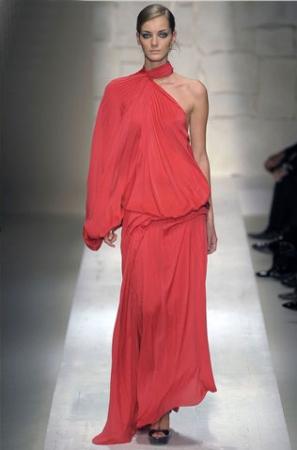 玫紅色的亮麗一下子扎入我們的眼睛,柔滑的絲緞和嵌亮絲的面料互相纏繞交錯(cuò),不同的光澤質(zhì)感豐富了視覺。再加上斜肩的吊帶、80年代風(fēng)格的Body-con捆綁設(shè)計(jì),以及前短后長(zhǎng)露出修長(zhǎng)雙腿的裙擺,都讓這款長(zhǎng)裙成為本季最佳性感之選。