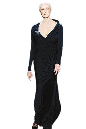 卡門鶴發(fā)紅唇,保養(yǎng)得法,依然活躍在T臺。Hermes邀她展示新品,Dior請她去助陣,她代言的廣告業(yè)常常出現在《Vogue》、《Bazzar》等時尚雜志中,甚至連她老年證上的證件照,都出自英國著名時尚攝影師諾曼·帕金森之手……其時尚影響力一點不遜年輕超模。她穿著火紅長裙走在T臺上的模樣,身姿挺拔、氣質優(yōu)雅,一派女王風范,年輕時的照片也是得到追捧,被贊像“葛麗泰·嘉寶”。