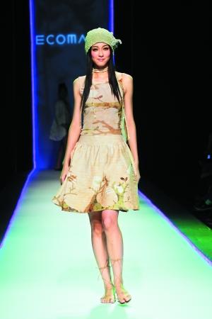 模特穿的時(shí)裝是用玉米桿作為原材料,低碳、環(huán)保! ∮浾摺 ×纸 攝