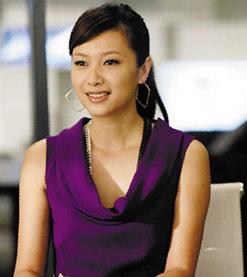 片中徐靜蕾一身亮紫色無袖堆領(lǐng)上衣搭配幾何形狀耳環(huán),顯得柔媚中不失干練,烘托出一種高貴典雅又富有親和力的氣質(zhì)。
