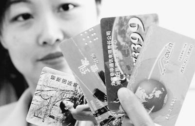 北京一消費(fèi)者正在展示自己的部分會(huì)員卡!£悤愿鶖z