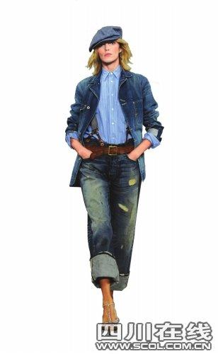 RalphLauren在2010春夏紐約時裝周系列發(fā)布會上,讓“男友式”牛仔新勢力大放異彩。卷邊、磨白做舊、夸張的破洞設(shè)計(jì)的男友式牛仔,加上一絲不茍的條紋襯衫、小西服外套或者牛仔夾克,再配上一頂牛仔報(bào)童帽,RalphLauren將女人骨子里的剛強(qiáng)和率性風(fēng)范發(fā)揮到極致,大張旗鼓地向全世界宣示“大女人主義”:即使是牛仔也要穿得比男人更有型。而Lacoste的“男友式”牛仔則更為內(nèi)斂,保留了經(jīng)典的寬褲管和卷邊設(shè)計(jì),較之有些咄咄逼人的RalphLauren,Lacoste更在有型之中展現(xiàn)輕松平和的生活態(tài)度。