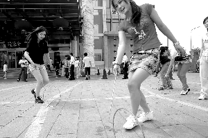 昨日,全聚德和平門店廣場,近50名90后市民體驗老玩具、老游戲。本報記者 秦斌 攝