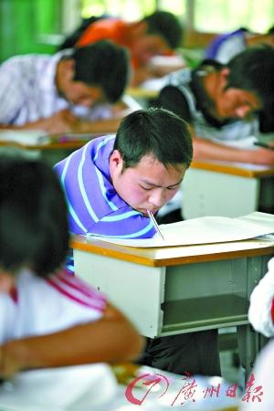 就讀于廣州市越秀外國語學(xué)校的高三男生勇仔(化名)的趕考路異于他人:媽媽推著輪椅,將他送到廣州市第三中學(xué)考場,接下來就由監(jiān)考老師接手。勇仔的試室在4樓,兩個壯年男老師一左一右抬起輪椅,將他護送到座位上。由于從出世以來就身患“成骨不全”,勇仔無法靠雙腿行走。從小學(xué)5年級至今,他能有機會參加高考,可以說全賴媽媽龔女士的懷抱。