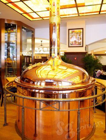 走進啤酒屋,你一定會被6座巨大的啤酒罐給震住,每座啤酒罐可以保存2000升啤酒,熱情的德國朋友準備了12000升啤酒供大家在世界杯期間開懷暢飲。在多數(shù)人心中,德國制造就是品質(zhì)保證,慕尼黑啤酒屋提供的鮮釀啤酒源自德國皇室御用品牌“皇家卡爾”,并由德國的著名釀酒師漢斯先生親自把關(guān),目前啤酒屋主要提供黑啤、白啤以及淡啤3種,世界杯期間全天買一贈一。此外,來自德國的大廚為球迷們準備了德國豬腳、德國香腸等風味純正的德式美食。