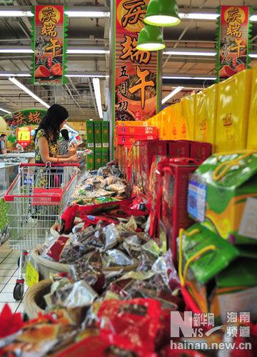 端午節(jié)將至,為了迎合消費(fèi)者走親訪友的需求,商家在粽子包裝上下足功夫,禮盒裝粽子占據(jù)了粽子專區(qū)重要位置,大有步“豪華月餅”后塵之勢。新華社記者周慧敏攝