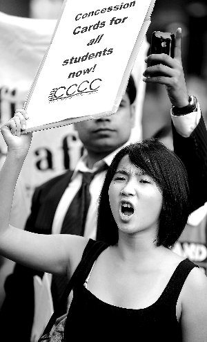 9月2日,來(lái)自中國(guó)、印度等10多個(gè)國(guó)家的近千名外國(guó)留學(xué)生聚集在澳大利亞悉尼科技大學(xué)門前,開始了他們?yōu)闋?zhēng)取合法權(quán)益而舉行的大游行。游行的直接原因是交通優(yōu)惠卡問(wèn)題———在留學(xué)生最多的新南威爾士州和維多利亞州,只有澳大利亞本地學(xué)生才能獲得交通優(yōu)惠卡,享受乘坐汽車、火車5折的待遇。但是,留學(xué)生們的不滿并不是小小的優(yōu)惠卡這么簡(jiǎn)單。