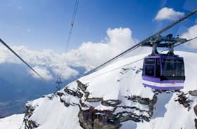 我總有點狹隘地認(rèn)為外國人都有點“似乎瘋狂”,一逮著點時間就去登山、滑雪。從山下徒步登上山頂?shù)倪@股累暫且不提,爬上山后再從高高的懸崖跳下去,炫自己的滑雪技術(shù)的這股勇氣真是可歌可泣,像我這樣缺少膽量的人自然是不能做此類瘋狂之事,可是面對皚皚白雪和巍巍高山總是心有不甘,而連接雪山的纜車則正好可以滿足我不費吹灰之力也可飽覽群山的愿望。