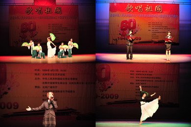 隨后,同學們圍繞“歌唱祖國,用歌聲為祖國生日獻禮”的主題,表演了豐富多彩的文藝節(jié)目。開場團體舞蹈《春天的故事》造型優(yōu)美,歌曲《我和我的祖國》傾注了年輕海外學子對祖國母親的款款深情,歌聲嘹亮,獨舞《征途》英姿颯爽,獨唱《再見瀏陽河》優(yōu)美動聽。此外,二胡演奏、詩歌朗誦、鋼琴獨奏、小提琴演奏和獨具特色的中國旗袍時裝秀等表演贏得了全場觀眾的喝彩。雖然這次參加演出的絕大多數(shù)是80后、90后的年輕學生,但每一個節(jié)目都經過了精心準備和反復排練,每一個表演都展現(xiàn)了同學們對祖國60華誕的喜悅和自豪。形式多樣、異彩紛呈的演出博得滿場觀眾一陣又一陣熱烈的掌聲和歡呼聲。