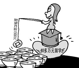 海歸低薪求職敲響了盲目留學(xué)的警鐘,對(duì)此,學(xué)生和家長(zhǎng)一定要有充分和清醒的認(rèn)識(shí)。(何勇 唐春成/漫畫)