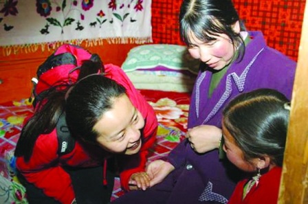 盛嘉璐沒有退縮。她克服了當(dāng)?shù)貧夂驉毫、水源不足、交通不便、通訊不暢、教學(xué)設(shè)備欠缺等各方面的困難,全身心投入教學(xué)當(dāng)中。由于教學(xué)設(shè)備的稀缺,盛嘉璐在實際教學(xué)當(dāng)中甚至把學(xué)生帶來的雞蛋、水果等各種東西搬到了課堂上。