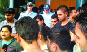 在學(xué)生們心情慌亂地填寫轉(zhuǎn)校表格時,警方和保安在現(xiàn)場嚴陣以待。這些表格由清盤人派發(fā),AUSTECH學(xué)院的管理層沒有到場回答學(xué)生們的疑問。
