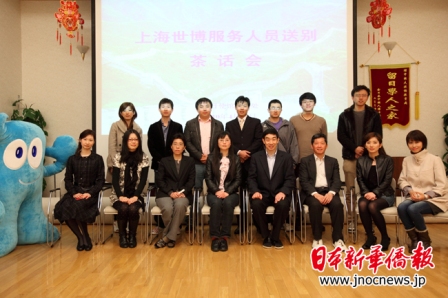 中新網4月23日電 據日本新華僑報網報道,2010年上海世博會,是展示中華風采、溝通世界人民的一次盛會。雖然遠在千里之外,留日中國學子們也是滿懷熱情迎接世博的到來,并準備為之貢獻自己的力量。4月22日,中國駐日本大使館教育處為即將啟程去上海的8名中國留學生舉行了送別茶話會。這8名中國女留學生是從近200名報名者中遴選出來的,她們將在世博會的日本商品館工作。