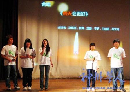 在中國駐韓大使館教育處的領導和在韓中國留學生聯合會的號召下,由建國大學學生會籌劃舉辦的“情系玉樹”,即建國大學留學生為玉樹災區(qū)人民祈福募捐晚會,于4月28號在建國大學學生會館小禮堂莊嚴舉行。