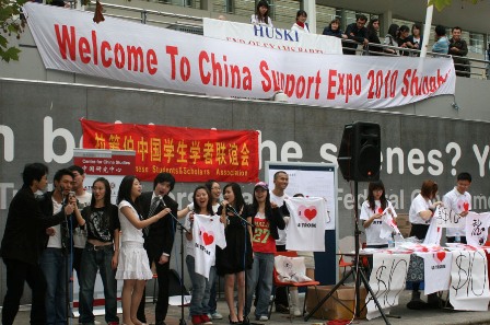 中新網(wǎng)5月7日電 據(jù)中國駐澳大利亞墨爾本總領(lǐng)館消息,5月4日,澳大利亞拉籌伯大學(xué)中國學(xué)生學(xué)者聯(lián)誼會在該校中心區(qū)舉行了迎世博大型活動;顒舆x擇在中午學(xué)生們課間休息的黃金時間舉行,吸引了數(shù)百名師生駐足觀看。該校國際學(xué)生部及中國研究中心代表出席,駐墨爾本總領(lǐng)館教育領(lǐng)事出席。