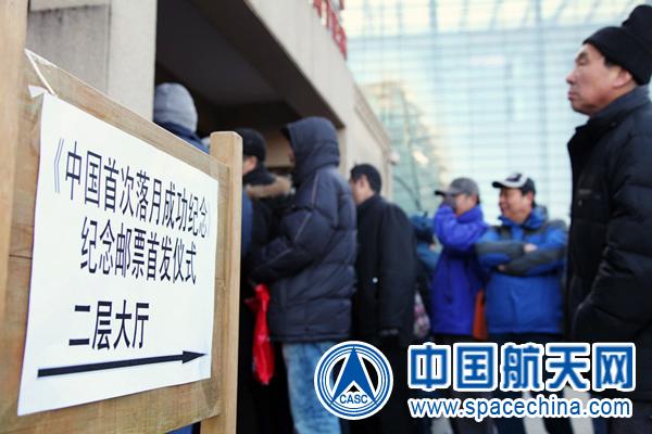 時間跨入2014年的第一天,早上7點,天剛蒙蒙亮,北京天文館還未開門,就已經(jīng)有上百人自發(fā)地在門前排起了長隊,這些集郵愛好者正等待著購買《中國首次落月成功紀(jì)念》郵票和首日封,并加蓋“月亮郵局”紀(jì)念郵戳,將“第一落”的喜悅分享到五湖四海。