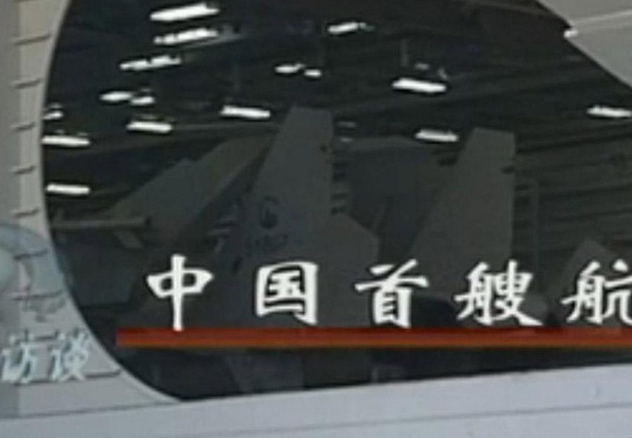 圖為中國首艘航母機庫內(nèi)停放的疑似艦載機。(央視截圖)