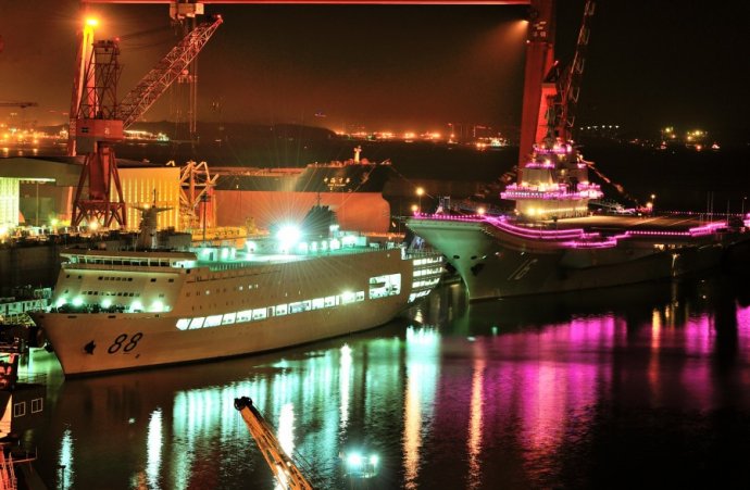 網(wǎng)友拍我航母平臺(tái)“遼寧艦”節(jié)日期間霓虹燈閃亮裝點(diǎn)海灣