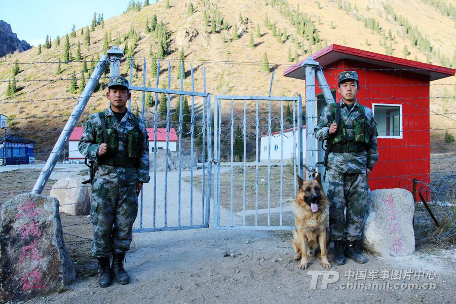 楊建軍、樊瑞祥與哈力擔(dān)負(fù)營(yíng)門(mén)警衛(wèi)。朱德華 攝