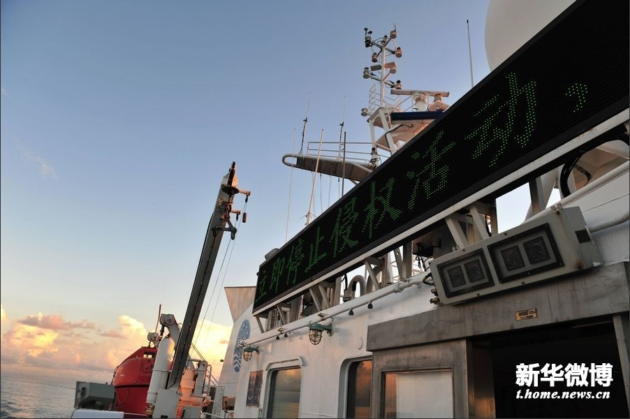 中國海監(jiān)50船的電子屏上顯示:釣魚島及其附屬島嶼自古以來就是中國固有領土,中國對此擁有充分的歷史和法律依據。你方對釣魚島及其附屬島嶼采取的任何單方面措施都是非法的、無效的,你船的行為已經侵犯了中華人民共和國主權及主權權利,請你船立即停止侵權活動。否則你將承擔由此產生的一切后果。(來源:新華網)