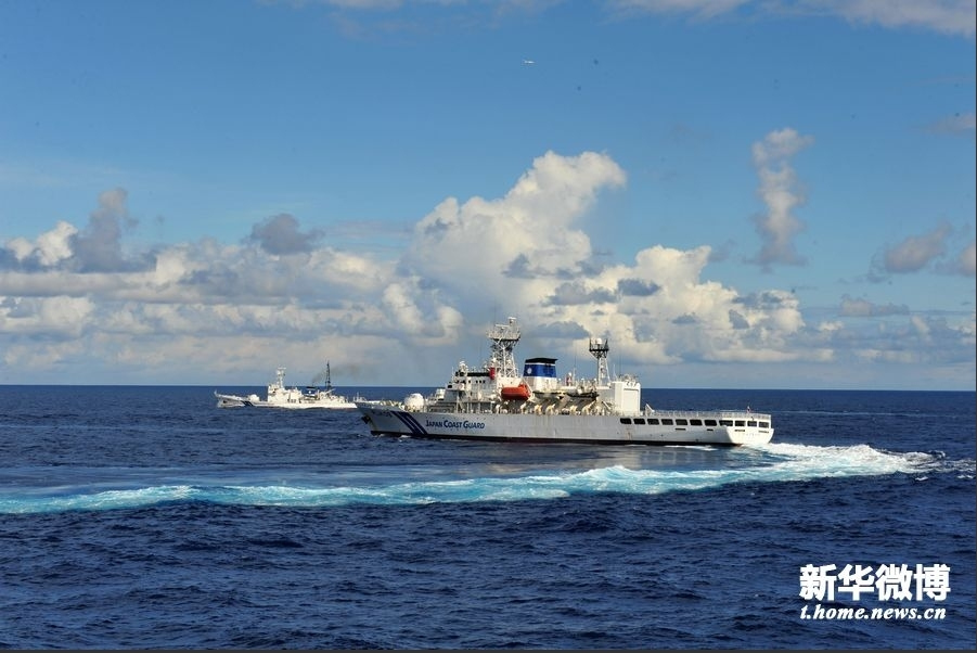 日方船只在海面上急速調(diào)頭