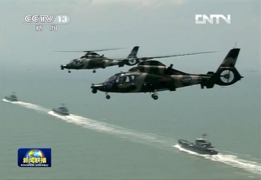 武裝直升機(jī)編隊(duì)為水面部隊(duì)登陸提供空中火力支援