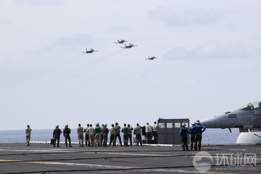 馬來(lái)西亞海軍的蘇-30戰(zhàn)機(jī)與美國(guó)海軍的F/A-18戰(zhàn)斗機(jī)組成編隊(duì)從華盛頓號(hào)航母上空飛過(guò)