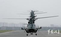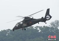 中新網(wǎng)珠海11月11日電(陳海峰) 中國陸航直19武裝直升機11日在珠海航展上空進行了精彩的飛行表演。