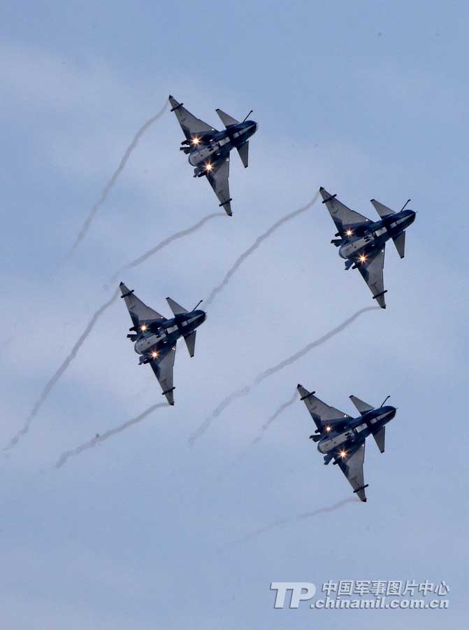 4機(jī)菱形隊(duì)放起落架斜盤旋。解放軍報(bào)記者 喬天富 攝