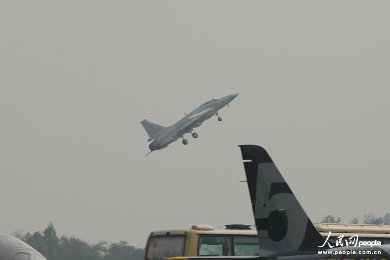 梟龍戰(zhàn)機(jī)起飛進(jìn)行飛行表演。人民網(wǎng)記者 閆嘉琪 攝