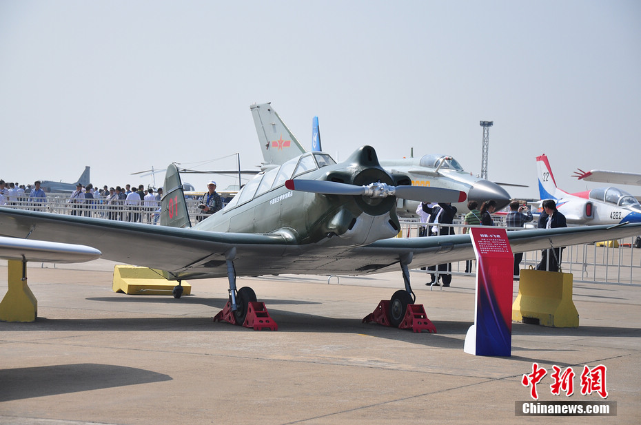 初教5飛機(jī)是中國(guó)第一種自行制造的初級(jí)教練機(jī),原型為蘇聯(lián)雅克-18教練機(jī)。陳海峰 攝